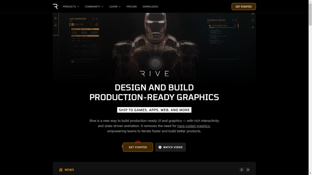 Rive is a real-time interactive design tool that allows users to create animations and integrate them seamlessly into apps, games, and websites. Unlike traditional animation tools that export static videos or GIFs, Rive uses its own runtime to play animations dynamically, making it perfect for interactive experiences.